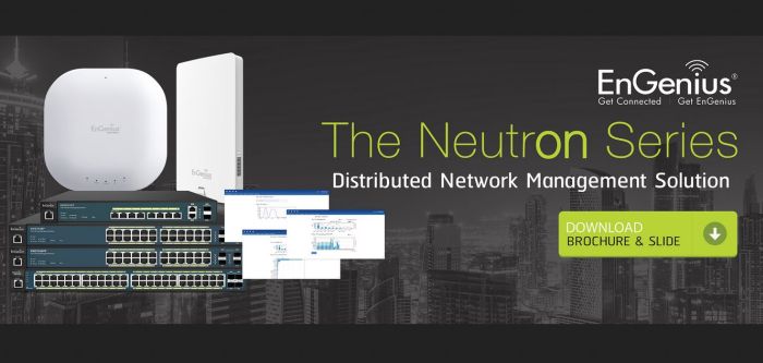 จากที่ EnGenius ได้เปิดตัว Controller Based WLAN Solution หรือ Neutron Series มาซักระยะหนึ่งแล้วและได้รับการยอมรับจากผู้ใช้งานอย่างกว้างขวางตลอดปีที่ ผ่านมา วันนี้ EnGenius พร้อมเต็มที่ที่จะนำเสนอ Neutron Solution เป็นโซลูชั่นด้านเครือข่ายหลักที่จะมาตอบสนองการใช้ WLAN สำหรับกลุ่มโรงแรม อพาร์ทเมนต์ โรงเรียน หรือสำนักงานทั่วไป