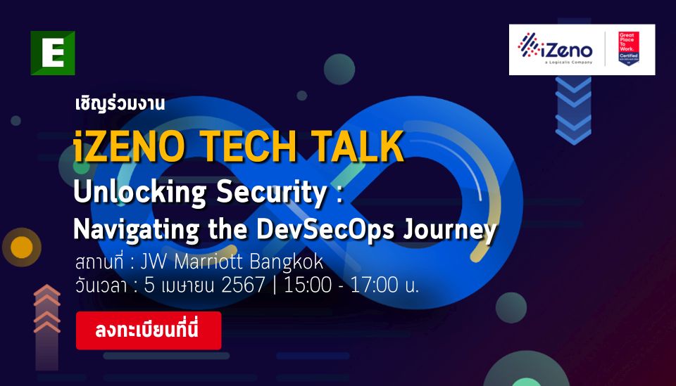 iZeno เรียนเชิญทุกท่านเข้าร่วมงานจิบน้ำชายามบ่าย พร้อมพูดคุยกันในสไตล์เบาๆ ในประเด็นด้านระบบการพัฒนา, ความปลอดภัยทางไซเบอร์ และระบบไอทีโอเปอเรชั่น เพื่อเฟ้นหาแนวทางในการก้าวสู่โลกของไอทีทางดิจิทัล ในงาน Unlocking Security: Navigating the DevSecOps Journey