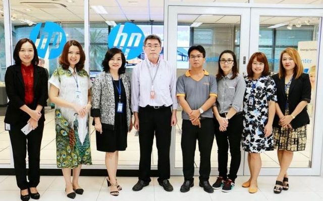 นางเนาวนิจ หลิมประเสริฐศิริ (ที่ 3 จากซ้าย) ผู้ช่วยผู้อำนวยการกลุ่มผลิตภัณฑ์วัสดุสิ้นเปลือง บริษัท เมโทรซิสเต็มส์คอร์ปอเรชั่น จำกัด (มหาชน) ให้การต้อนรับ นายชัยวุธิ คหกิจไพศาล (ที่ 4 จากซ้าย) ผู้จัดการฝ่ายจัดซื้อ และ นายณรงกต วัฒนดำรงวงศ์ (ที่ 4 จากขวา) ผู้จัดการฝ่ายปฏิบัติการเทคโนโลยีสารสนเทศ พร้อมทีมงานจาก บริษัท เคอรี่ เอ็กซ์เพรส (ประเทศไทย) จำกัด ซึ่งเป็นบริษัทจัดส่งพัสดุชั้นนำของประเทศไทย ในโอกาสเข้าเยี่ยมชม “PageWide Technology Center” ศูนย์สาธิตเทคโนโลยีเครื่องพิมพ์เอชพีใหม่ล่าสุดของบริษัทฯ และทดสอบประสิทธิภาพเครื่องพิมพ์ “HP PageWide” เมื่อวันที่ 4 ตุลาคม 2559 ณ สำนักงานใหญ่